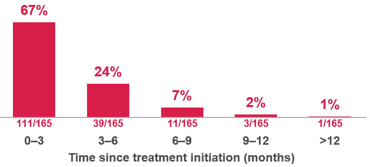 Figure 1: Onset time since treatment initiation (from reports of 41% of cases)1